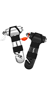 A cutter has been added to the glass breaker to help you quickly cut off your seat belt and escape in a critical situation